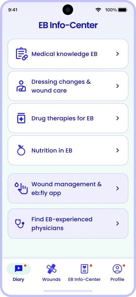 eb:fly offers you information on various topics relating to EB, such as wound care and nutrition. We have created the content in collaboration with medical experts.