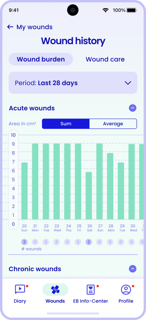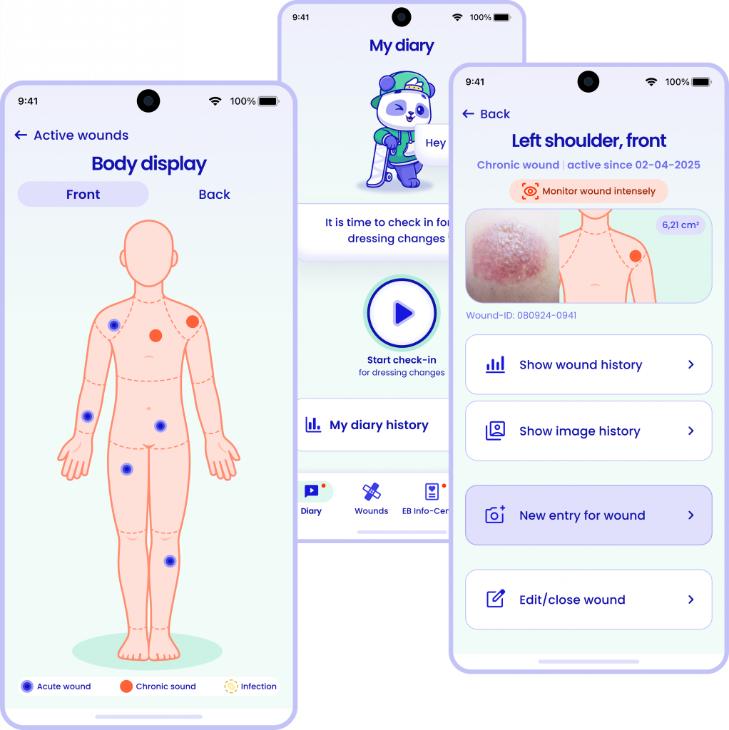 With eb:fly, you can easily record and track your everyday symptoms and experiences to help you manage your EB.